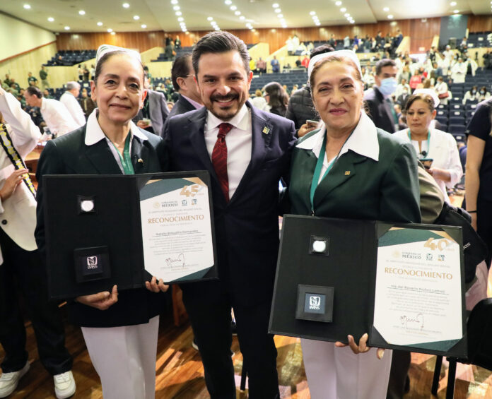 En el marco del evento de conmemoración de los 80 años del Seguro Social, se hizo entrega de 10 reconocimientos por antigüedad a personal del IMSS con más de 40 años de servicio en diversas unidades del Instituto en todo el país.