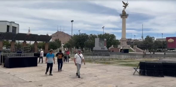 Últimos preparativos en la Plaza del Ángel, en la capital, para recibir a Claudia Sheinbaum, candidata a la Presidencia de México por la Coalición “Sigamos Haciendo Historia” (Morena-PT-PVEM)