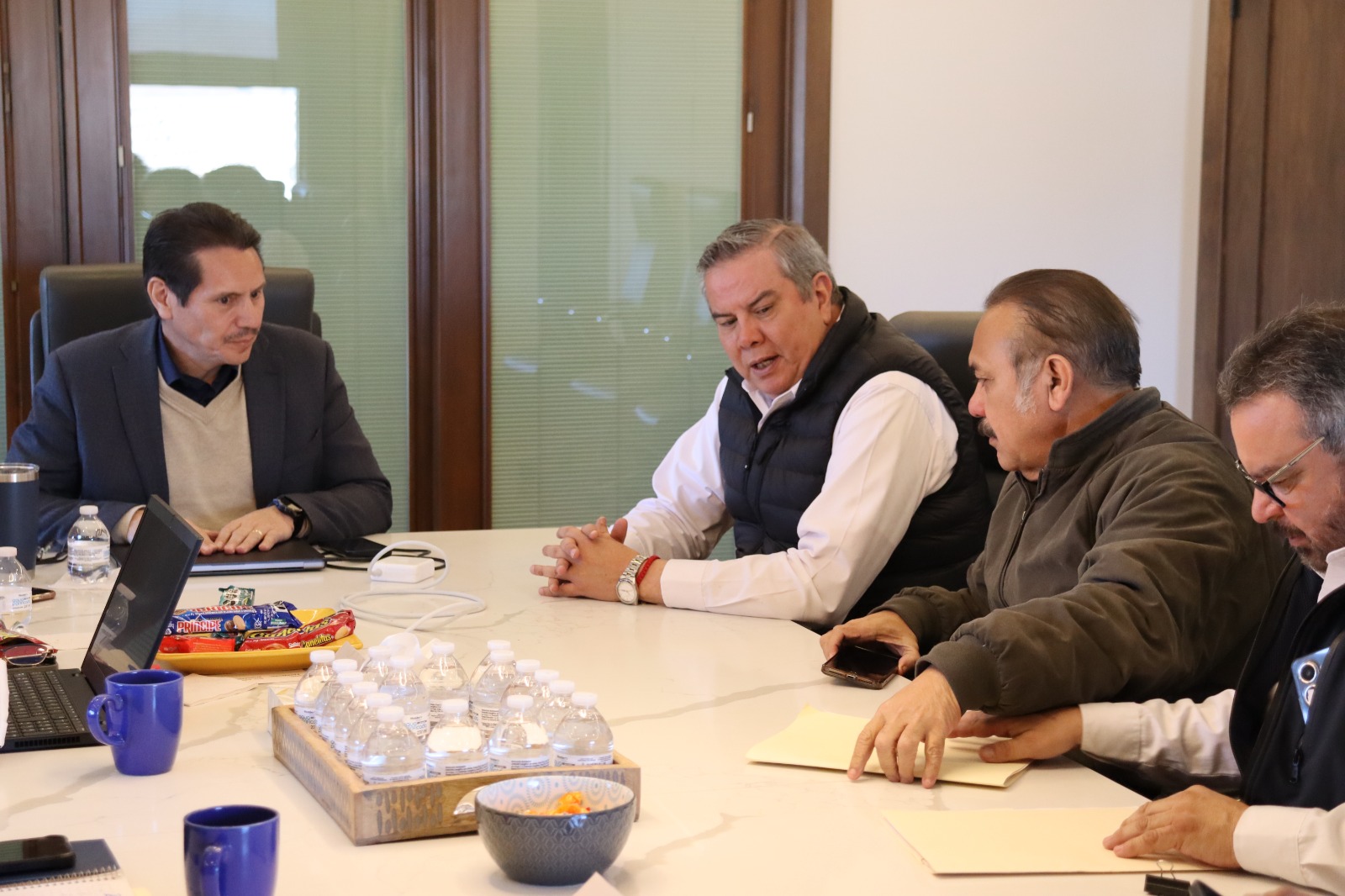 El secretario de Hacienda, José de Jesús Granillo Vázquez y la secretaria de Educación, Sandra Elena Gutiérrez Fierro, recibieron al secretario general de la Sección 42 del Sindicato Nacional de Trabajadores de la Educación (SNTE), Manuel Quiroz Carbajal, así como a su equipo de trabajo, a fin de escuchar sus peticiones y llegar a acuerdos.