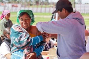 Como parte del esfuerzo interinstitucional para proteger la salud de las comunidades indígenas, el Gobierno del Estado reforzó la jornada especial de vacunación contra el sarampión en Batopilas, donde además entregó a las familias de la región más de 25 toneladas de maíz y frijol.