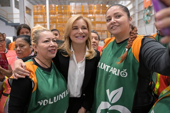 En el lugar, la mandataria estatal se unió a la cadena para cargar los camiones con los paquetes alimenticios, para su posterior distribución a familias en situación de vulnerabilidad. Además, conoció de primera mano la logística que tiene el Banco para la distribución de estos apoyos.