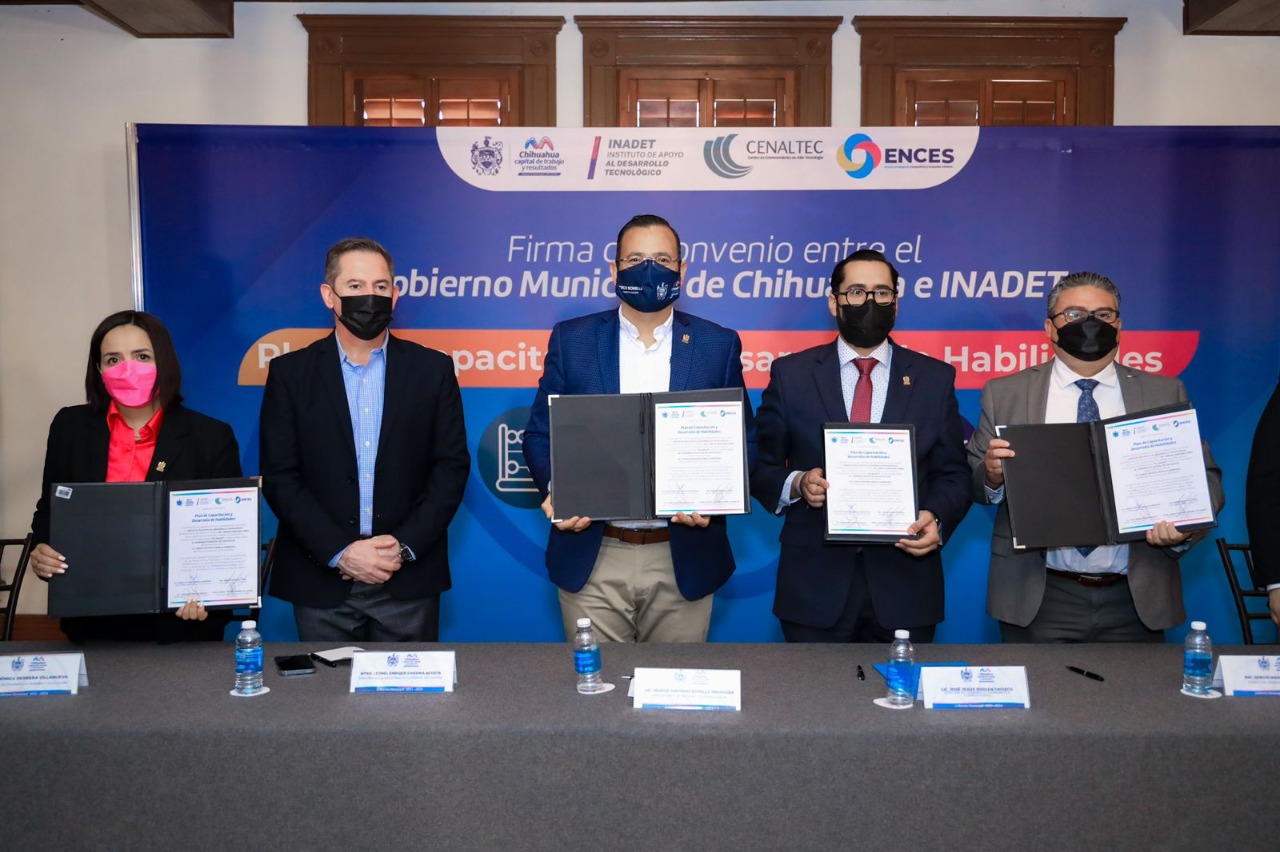 Bonilla Mendoza, puntualizó que gracias a este convenio con el Instituto de Apoyo al Desarrollo Tecnológico (INADET), a través del Centro de Entrenamiento en Alta Tecnología (CENALTEC) y el Plan Municipal de Desarrollo 2021-2024, estarán ofreciendo las capacitaciones en: