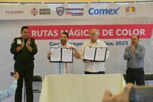 El secretario de Turismo, Edibray Gómez Gallegos y el secretario de Turismo del gobierno federal, Miguel Torruco Marqués, encabezaron una ceremonia en la plaza principal del poblado de Creel donde se le ratificó como Pueblo Mágico y signaron el acuerdo para aplicar el programa de Rutas Mágicas de Color.