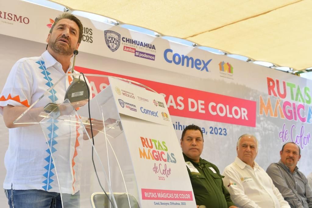 Durante su participación, el titular de turismo en el estado declaró que, “el objetivo que hoy nos trae aquí es el embellecimiento formal del proyecto Rutas Mágicas de Color, para que de la mano con la asociación civil Corazón Urbano, se llene Creel de vivos colores realzando su entorno con inspiradoras tonalidades para el disfrute de la gente “.
