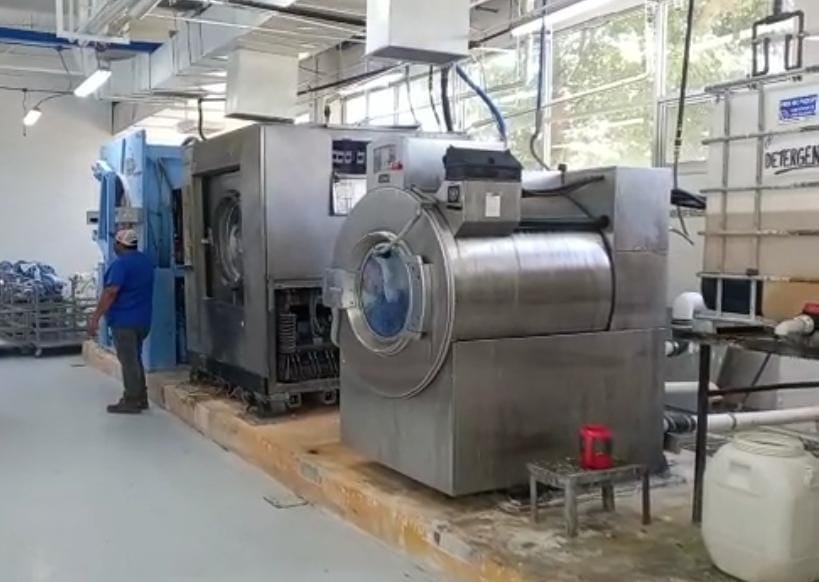 Detalló que cuenta con tres lavadoras: una de 200 kilos, otra de 100 kilos y otra de 80 kilos de capacidad; además, tiene cuatro secadoras con capacidades de 80 y 100 kilos respectivamente.
