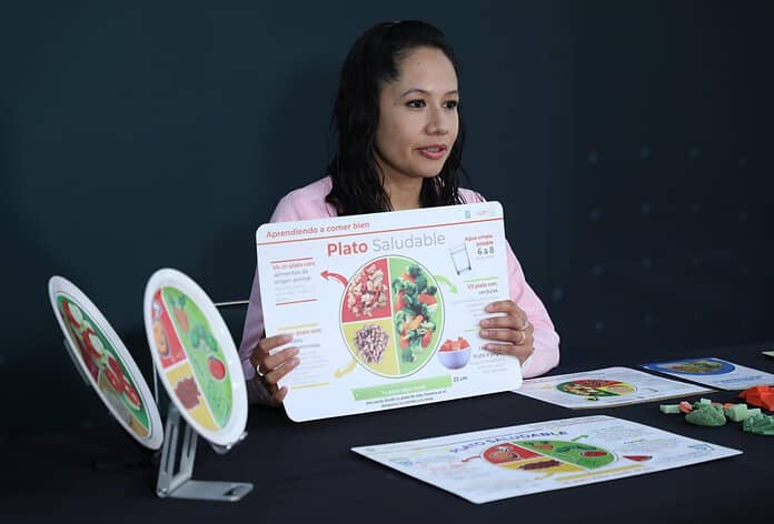 Detalló que el Plato saludable indica la cantidad de alimentos a consumir distribuidos en un plato de 23 centímetros. La mitad debe contener verduras crudas de diversos colores para que haya un buen aporte de fibra, la cuarta parte debe tener alimentos de origen animal como pescado, queso panela, pollo o res y el resto, cereales como arroz, sopa de pasta, tortilla o leguminosas como frijoles, habas o lentejas.