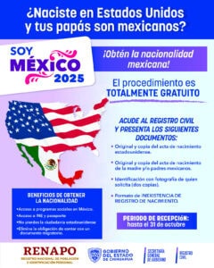 La Secretaría General de Gobierno por conducto de la Dirección de Registro Civil, inició la implementación del Programa “Soy México”, por medio del cual se facilita a hijos de mexicanos nacidos en Estados Unidos, obtener la nacionalidad mexicana.