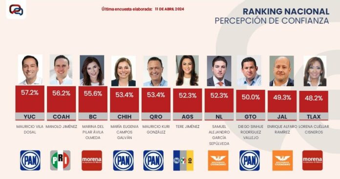 Además se ubicó en el lugar número 4 del rubro de percepción de confianza, con un índice del 53.4 por ciento.