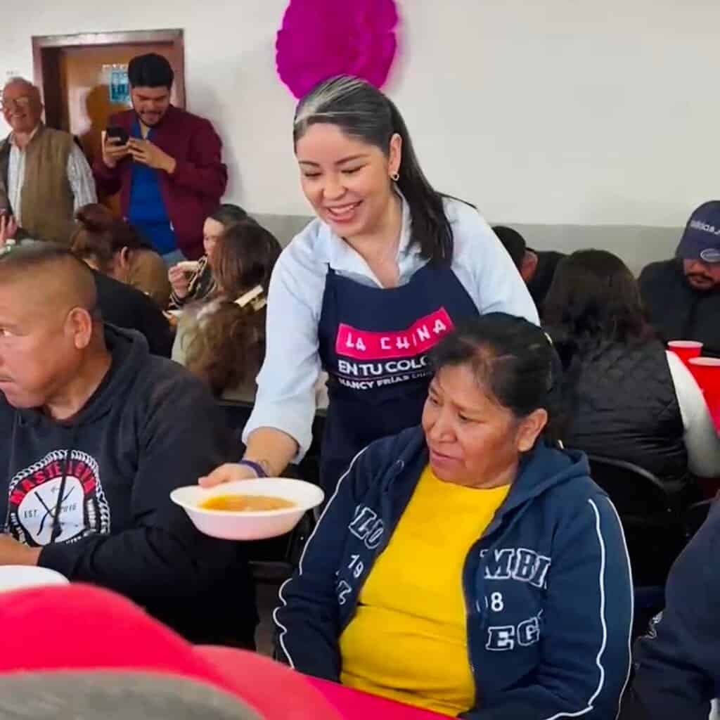 La diputada Federal Manque Granados asistió al evento y mostró su apoyo al programa participando activamente en la distribución de los platos de comida. Junto con la diputada Frías, ambas se encargaron de servir personalmente a los asistentes y de escuchar las inquietudes y necesidades de los vecinos, tomando nota para futuras gestiones.