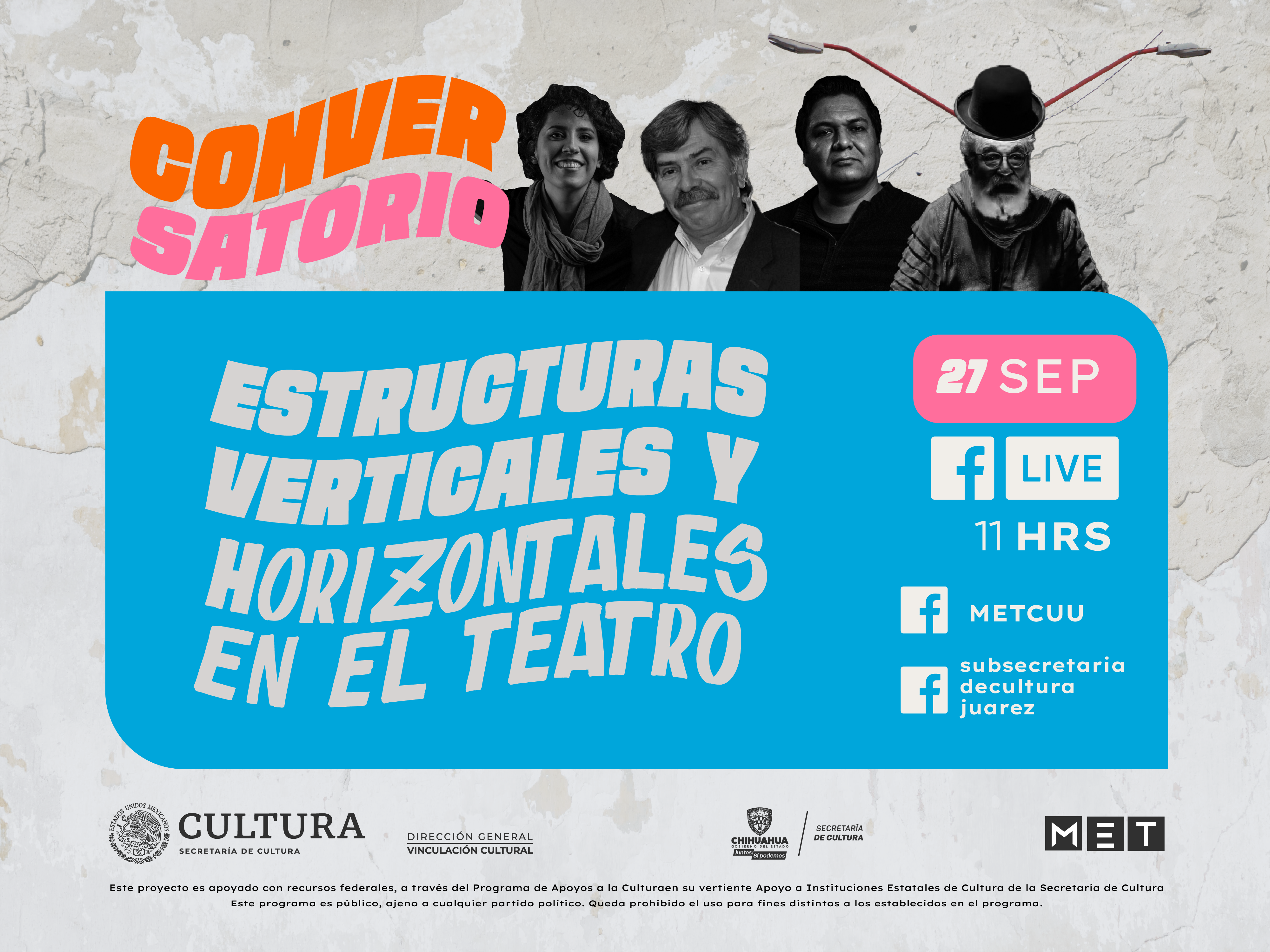La Secretaría de Cultura, invita a la comunidad de artes escénicas a participar en las actividades de capacitación que se realizarán del 26 al 30 de septiembre, tanto de manera presencial como virtual, en el marco de la Muestra Estatal de Teatro (MET).