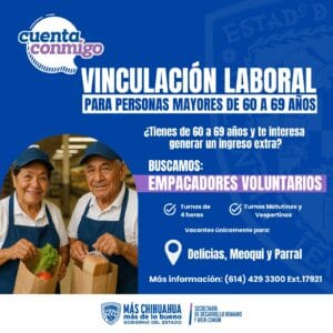 De igual manera, se solicita la participación de adultos mayores de 60 a 69 años interesados en integrarse como empacadores voluntarios en supermercados de los municipios de Delicias, Meoqui y Parral.