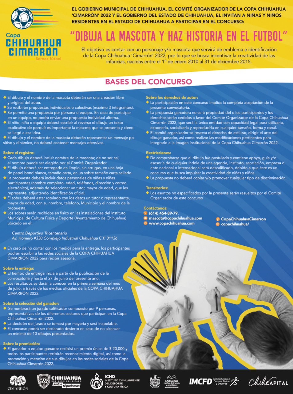 La Copa Chihuahua Cimarrón 2022 #SomosFútbol, dio a conocer el concurso “Dibuja a la mascota y haz historia”, con el que invita a niños y niñas del estado, a crear la imagen que dará vida al torneo, que se llevará a cabo del 16 al 19 de septiembre.