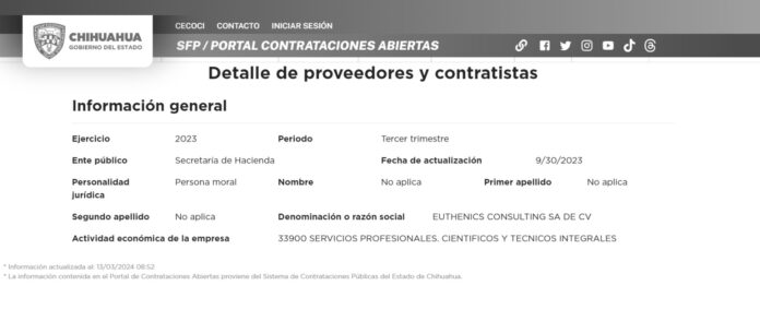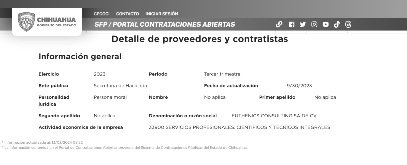 Cabe señalar que Euthenics Consulting, conocida también por su nombre comercial, MW Group, está identificada en el padrón de proveedores y contratistas del Gobierno del Estado. Esta empresa pauta publicaciones en por lo menos tres portales digitales, como “Noticias México”, “Denuncia México” y “Plataforma Informativa Mexicana”, como lo exhibió una investigación de Contralínea.
