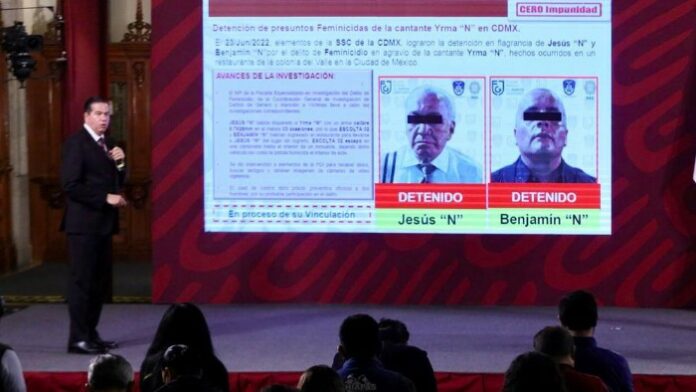 Aseguró que el 23 de junio pasado, agentes de la Secretaría de Seguridad Ciudadana (SSC) detuvieron en flagrancia a Jesús “N” y Benjamín “N” por el delito de feminicidio contra la cantante Yrma “N”, en un restaurante en la alcaldía Benito Juárez, en la Ciudad de México.