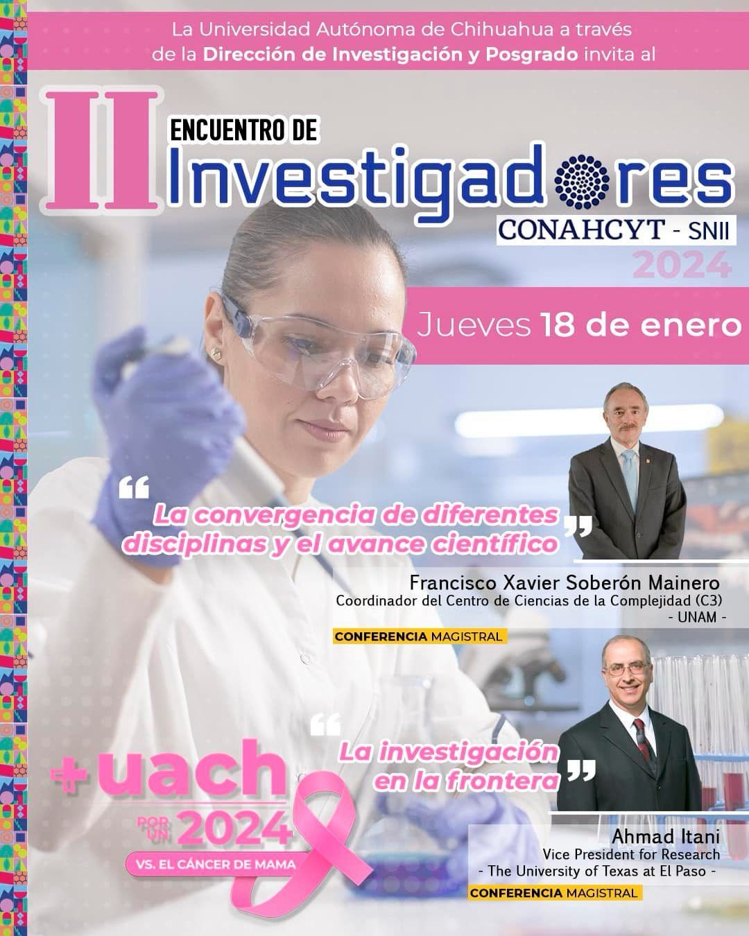 Durante este encuentro, organizado por la Jefa de Investigación de la UACH, Yesenia Mendoza Villalobos, se contará con la presencia del ponente Francisco Xavier Soberón Mainero, catedrático de la UNAM y Coordinador del Centro de Ciencias de Complejidad; y con la participación de Ahmad Itani, vicepresidente de Investigación de UTEP, entre otras mesas de trabajo y conferencias.