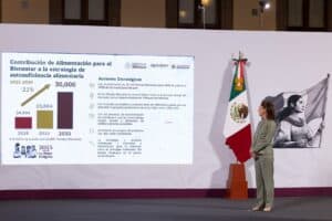 La Presidenta de México, Claudia Sheinbaum Pardo, presentó el plan para garantizar la soberanía y la autosuficiencia alimentaria a través de una inversión en 2025 de 53 mil 971 millones de pesos (mdp), la cual incrementará a 83 mil 750 mdp en el 2030 en apoyo a pequeños y medianos productores y productoras de maíz, frijol, arroz, cacao y miel a través de programas como Cosechando Soberanía, un nuevo Programa para el Bienestar que se sumará a Producción para el Bienestar y Fertilizantes para el Bienestar.
