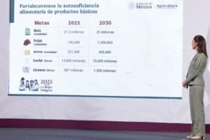 “El programa de Producción para el Bienestar y Fertilizantes para el Bienestar va para alrededor de 2 millones de pequeños productores estos programas existen desde el periodo del presidente López Obrador ¿qué programa nuevo estamos incorporando? Cosechando Soberanía, que son créditos a baja tasa de interés, que tienen seguros por si hay sequía, algún problema climático y también para precios y garantizamos además, a través de la gestión de la propia Secretaría que puedan tener un mercado justo, es decir que quien compra el maíz, quien compra el frijol, quien compra los distintos productos particularmente maíz y frijol pues pueda tener garantizado que no va a tener que ir a través del intermediario que le paga muy poco y después venderlo a las grandes harineras sino que pueda haber un acuerdo directo”, explicó en la conferencia matutina: “Las mañaneras del pueblo”.