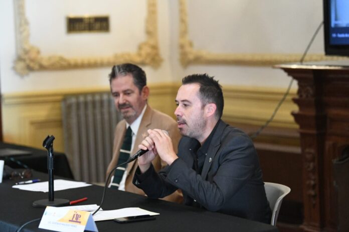 El director de Extensión y Difusión de la UACH, Gustavo Macedo, en compañía del director de la Facultad de Artes Roberto Ransom, presentó el programa que tendrá diferentes sedes, entre ellas, el Centro Cultural Universitario Quinta Gameros.