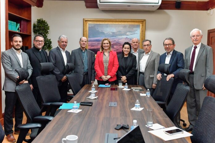 La gobernadora Maru Campos Galván recibió en Palacio de Gobierno a empresarios chihuahuenses y líderes religiosos, quienes le presentaron la propuesta de construcción del “Centro Binacional de Arte Virreinal” en la ciudad de Chihuahua para rescatar el arte que atesora el estado creado durante la época del virreinato en México.