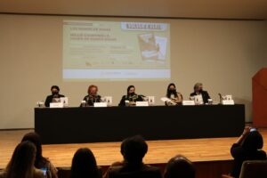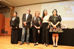 La secretaria de Cultura de Chihuahua, Rebeca Alejandra Enríquez Gutiérrez, y la directora del ICED, Socorro Soto, formaron parte del presídium junto al historiógrafo chihuahuense Jesús Vargas Valdés y la escritora Flor García Rufino, ambos coautores de “Nellie Campobello. Mujer de manos rojas”, y en representación del INBAL la subdirectora general de Bellas Artes, Laura Ramírez Rasgado.