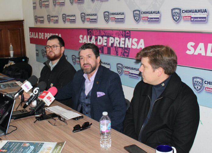 El secretario de Turismo, Edibray Gómez Gallegos; Kevin Dyck, director del Museo y Centro Cultural Menonita, y Javier González, en representación de Microtel Inn and Suites Cuauhtémoc, dieron a conocer los pormenores del programa.