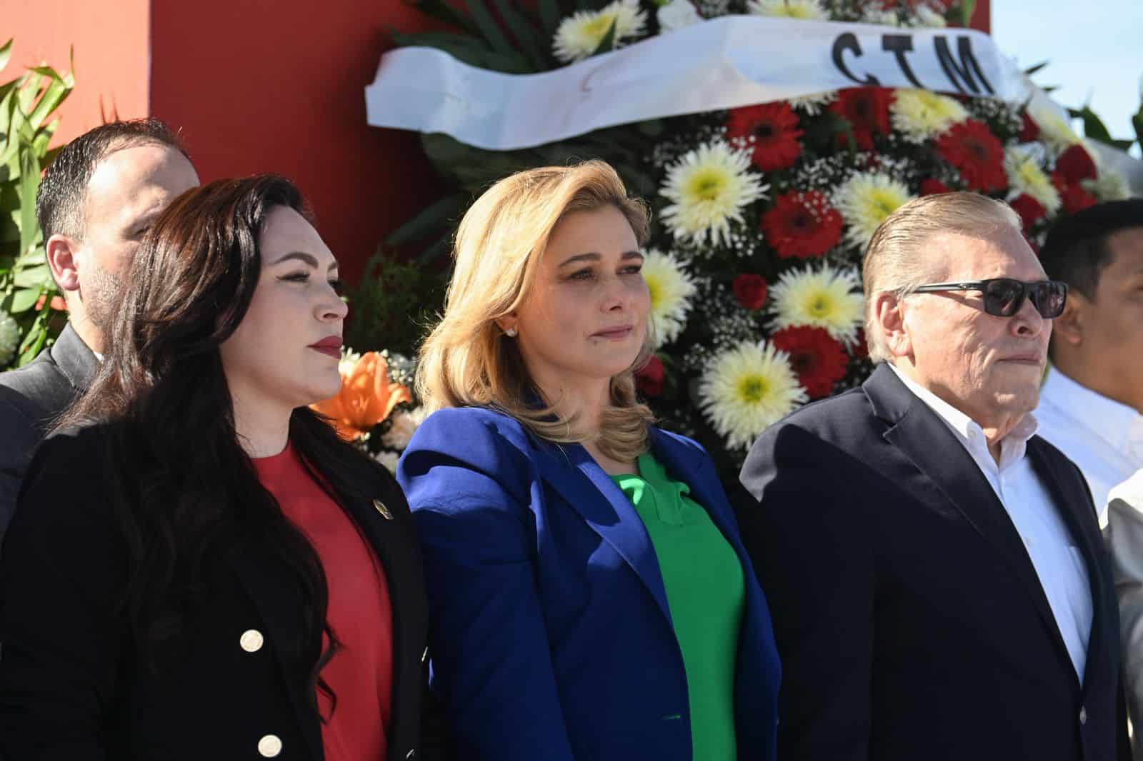 En compañía de diversas autoridades y previo al comienzo del tradicional desfile del 1 de Mayo, participó en el homenaje efectuado al pie de La Guirnalda, la escultura creada por el artista chihuahuense Sebastián como símbolo floral para honrar a los obreros mexicanos.