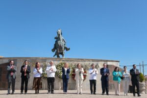 El acto se efectuó al pie del monumento dedicado al “Centauro del norte” y marcó el inicio de las actividades, que la mandataria tendrá en el transcurso del día en esta localidad.