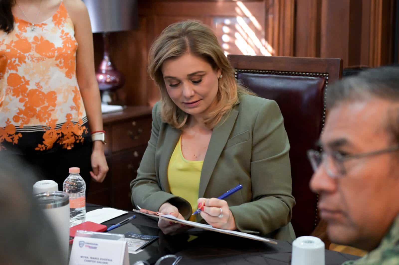 La gobernadora Maru Campos encabezó esta mañana en Palacio de Gobierno, la reunión de la Mesa Estatal de Coordinación para la Construcción de la Paz, en la cual se dio seguimiento a las estrategias implementadas en la entidad en materia de seguridad.
