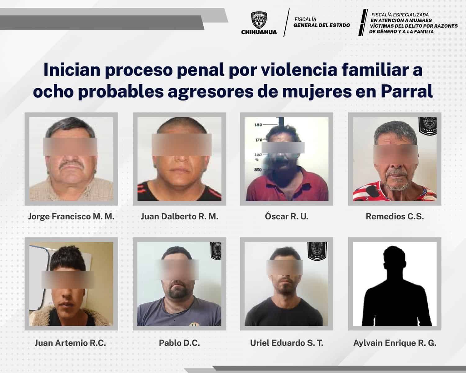 En seguimiento a investigaciones a cargo de la Fiscalía Especializada en Atención a Mujeres Víctimas del Delito por Razones de Género y a la Familia en la Zona Sur, se obtuvieron autos de vinculación a proceso penal en contra de ocho probables agresores de mujeres en la ciudad de Parral.