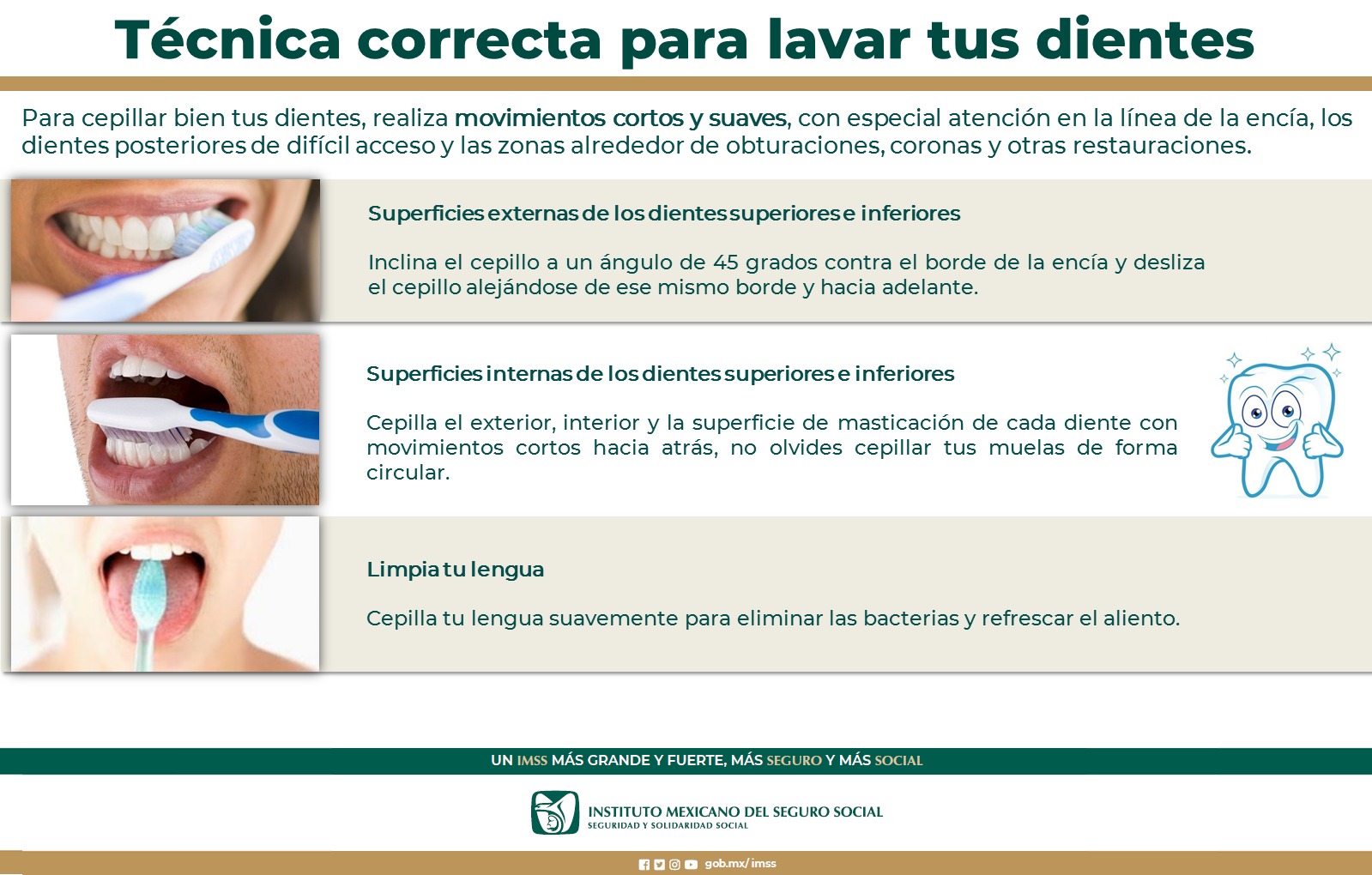 El Instituto Mexicano del Seguro Social (IMSS) en Chihuahua, a través de la Jefatura de Servicios Médicos, emite recomendaciones para un correcto cepillado de dientes.