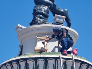 La Dirección de Mantenimiento Urbano, renovó la imagen de la emblemática flechadora de estrellas del norte, mejor conocida como La Diana Cazadora.