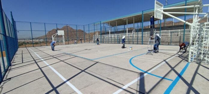 Además, se reparó la malla ciclónica de canchas deportivas, tableros de básquetbol, de hizo demarcación de líneas en canchas de futbol, básquetbol, así como pintura en gradería y muros de 18 unidades deportivas, entre ellas: Huerta Legarreta, Praderas del Sur, Mármol II, Riberas de Sacramento I, II y III, Jardines de Oriente, Camino Real, Punta Oriente, San Felipe, Ponce de León, Unidad Banderas Punta Oriente, Nuevo Milenio, Tarahumara, Wildcats y Nogales.