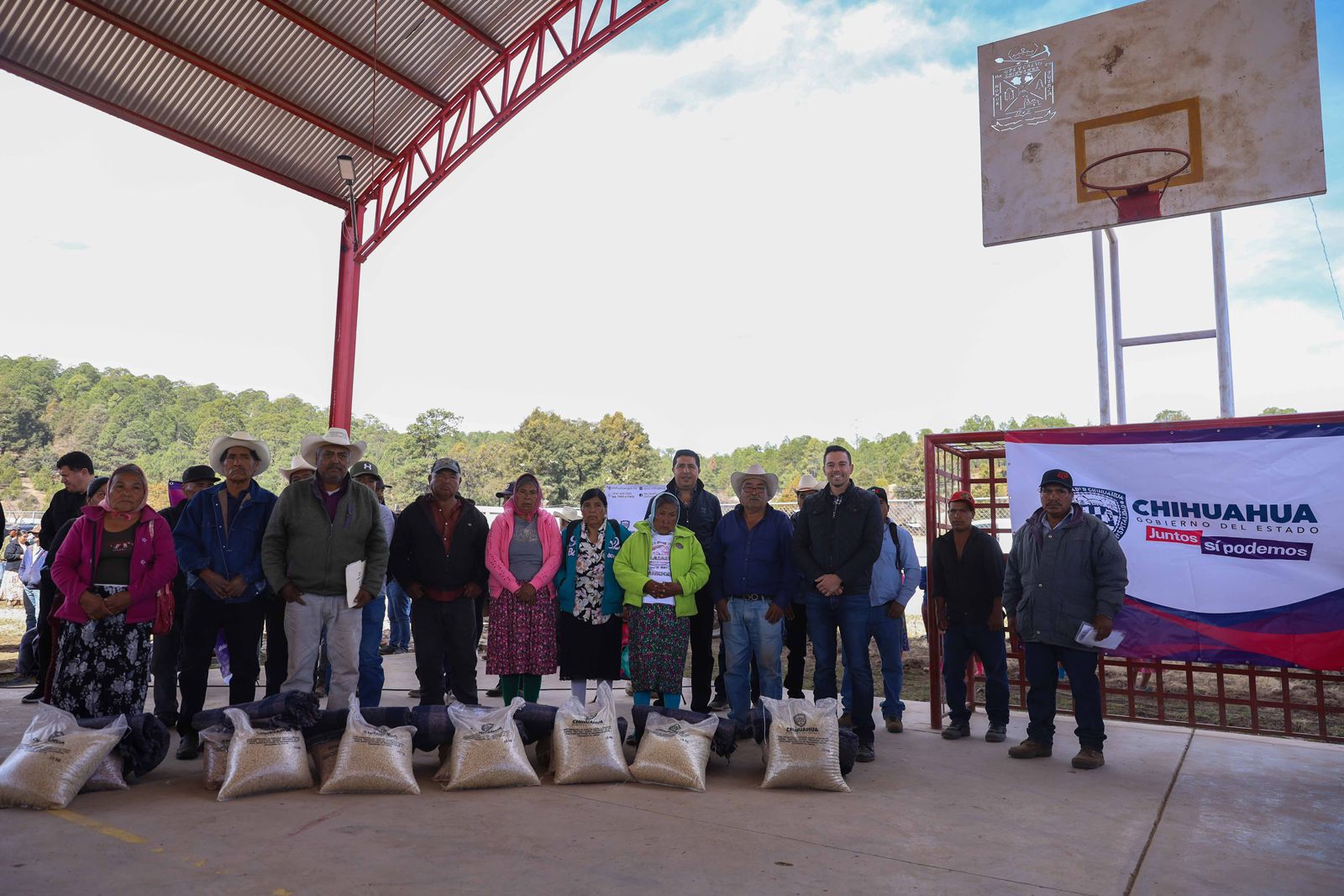En la comunidad de Rancho de Enmedio, municipio de Guadalupe y Calvo, la Secretaría de Pueblos y Comunidades Indígenas (SPyCI) y el Gobierno Municipal entregaron en conjunto 1,200 paquetes de maíz y frijol como parte de la estrategia “Juntos por la Sierra Tarahumara”.