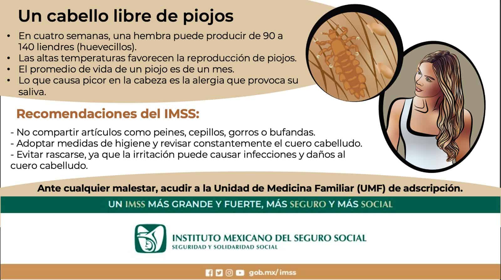 El Instituto Mexicano del Seguro Social (IMSS) en Chihuahua exhorta a no bajar la guardia con las medidas de higiene en este regreso a clases, para evitar la pediculosis o infestación de piojos.