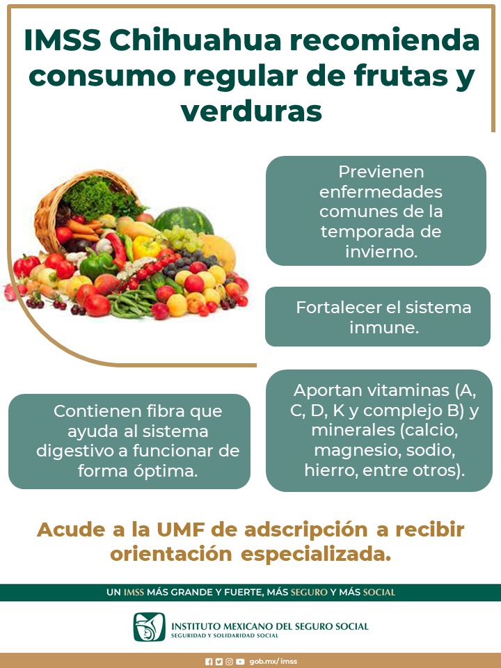 El Instituto Mexicano del Seguro Social (IMSS) en Chihuahua, a través de la Jefatura de Servicios Médicos, exhorta a la población a iniciar bien el 2024 con el consumo de una dieta balanceada, que incluya frutas y verduras.