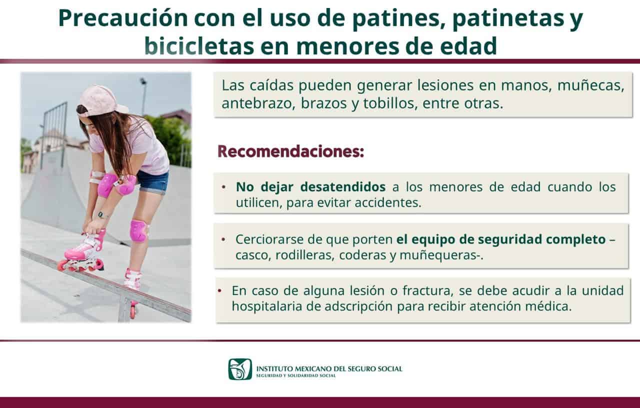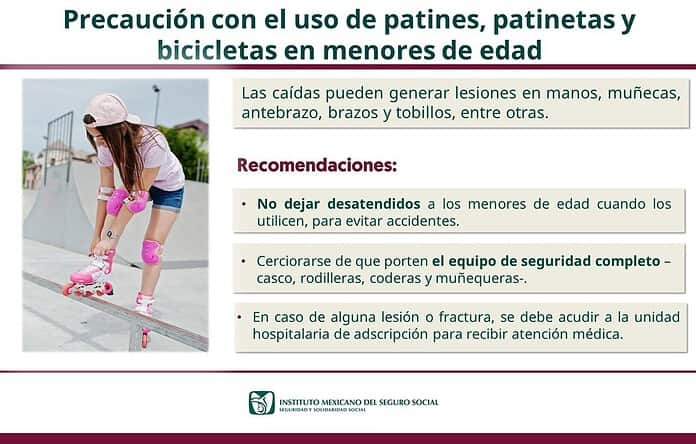 El Instituto Mexicano del Seguro Social (IMSS) en Chihuahua advierte a la población sobre las caídas y lesiones que pudieran sufrir los niños por el uso de patines, patinetas y bicicletas, ya que pueden ocasionar lesiones de leves a severas, y representan una importante demanda en el área de Urgencias.