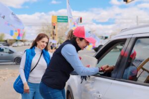 El primer punto, realizó un crucero en las avenidas Paseo de la Victoria y Calle Morelia donde saludó a varias automovilistas para presentarle sus propuestas de campaña, a quienes les señaló la necesidad de reabrir las estancias infantiles para ayudar al cuidado de los niños de madres trabajadoras.