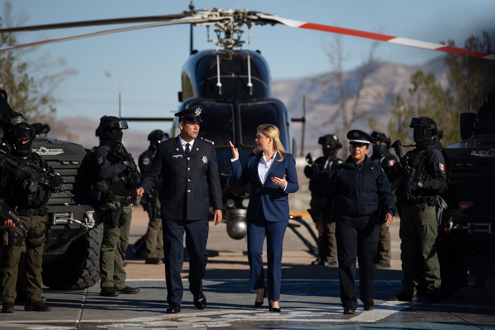 La mandataria comunicó además que se adquirieron nuevas patrullas y equipamiento diverso para las policías de 55 municipios del estado, y que continúa la implementación de los programas de prevención dirigidos a las niñas y niños chihuahuenses.