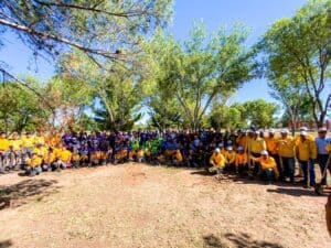 Autoridades de la Secretaría de Desarrollo Rural y del Instituto Chihuahuense del Deporte encabezaron las labores en una superficie de 2.5 hectáreas, a través del sistema conocido como “tresbolillo”, que optimiza el espacio y el crecimiento de los árboles endémicos que fueron plantados en la zona.