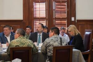 En el encuentro estuvieron presentes el secretario general de Gobierno, Santiago De la Peña; los generales, Alberto Miguel Rodríguez y Alejandro Gutiérrez, comandantes de las zonas militares 5/a y 42/a, respectivamente; el fiscal general del Estado, César Jáuregui y el secretario de Seguridad Pública, Gilberto Loya.