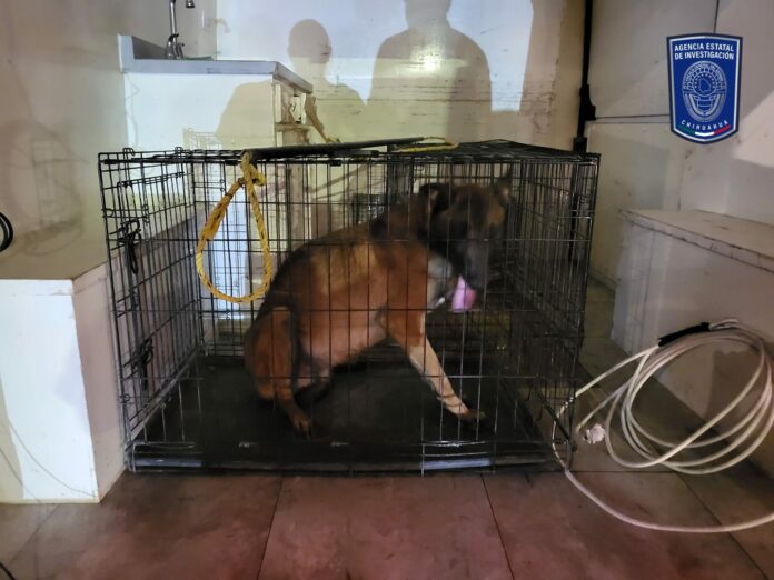 Elementos de la Agencia Estatal de Investigación intervinieron con orden judicial una propiedad ubicada en la intersección de la Avenida Paseo Triunfo de la República y Fray Junípero Serra, en Ciudad Juárez, donde rescataron un perro maltratado.
