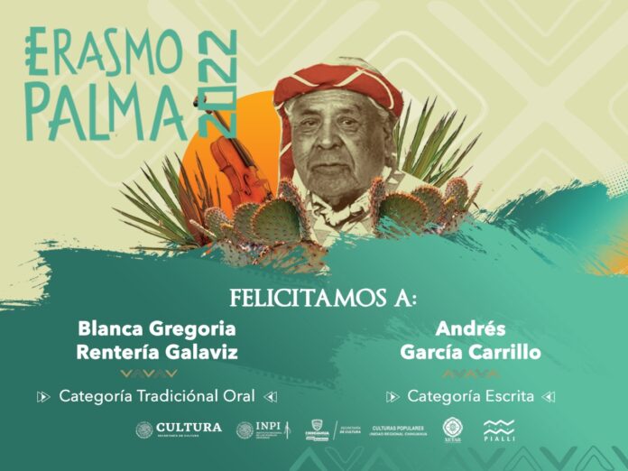 La Secretaría de Cultura, dio a conocer a las dos personas ganadoras del Premio Indígena Literario “Erasmo Palma”, edición 2022, quienes recibirán un estímulo económico de 30 mil pesos cada uno, así como la publicación de sus obras.
