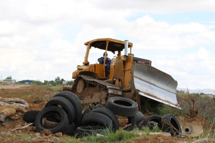 La Dirección de Servicios Públicos, trabaja en la limpieza y atención de un tiradero clandestino, ubicado a un costado de la colonia Riberas de Sacramento, al norte de la capital.