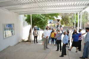 Acompañaron en el recorrido al funcionario federal, madres de familia integrantes del Comité Escolar de Administración, el director regional de Bienestar, Marcelino Gómez Brenes y la coordinadora estatal de LEEN, Adriana Beltrán Murillo.