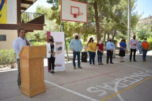 La tesorera del Comité de Padres de Familia, Claudia Beatriz Gardea Gardea recibió 500 mil pesos para mejorar las instalaciones de este plantel entre las que se encuentra la adquisición de mobiliario, equipo escolar, aditamentos para seguridad, material de primeros auxilios, rehabilitación de red hidráulica de drenaje y sistema de agua potable.