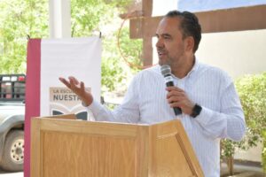 Acompañaron en el recorrido al funcionario federal, madres de familia integrantes del Comité Escolar de Administración, el director regional de Bienestar, Marcelino Gómez Brenes y la coordinadora estatal de LEEN, Adriana Beltrán Murillo.