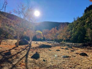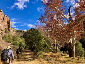 El primer día (sábado) partimos del pueblito conocido como El Willy, de donde recorrimos solo 12 kilómetros entre maples, álamos, alisos y otras variedades de árboles, en un trayecto multicolor hasta llegar a un cañoncito repleto de maples, que ascendimos para armar nuestro primer campamento (son dos las noches que dormimos en carpas con sleepings, arrullados por el ulular del viento entre los árboles). En cada campamento hay preparación como para ocho fogatas por lo que las noches con grupos numerosos se vuelven espectáculos con luces ígneas y hasta bohemias.