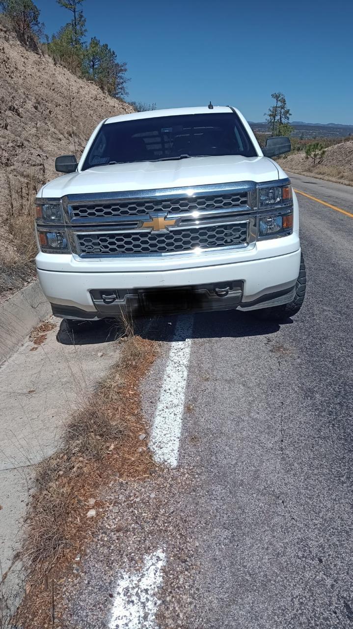 En el seguimiento de las investigaciones fue localizado en Guachochi, el vehículo robado de la marca Chevrolet, línea Silverado, modelo 2014, color Blanco, doble cabina.