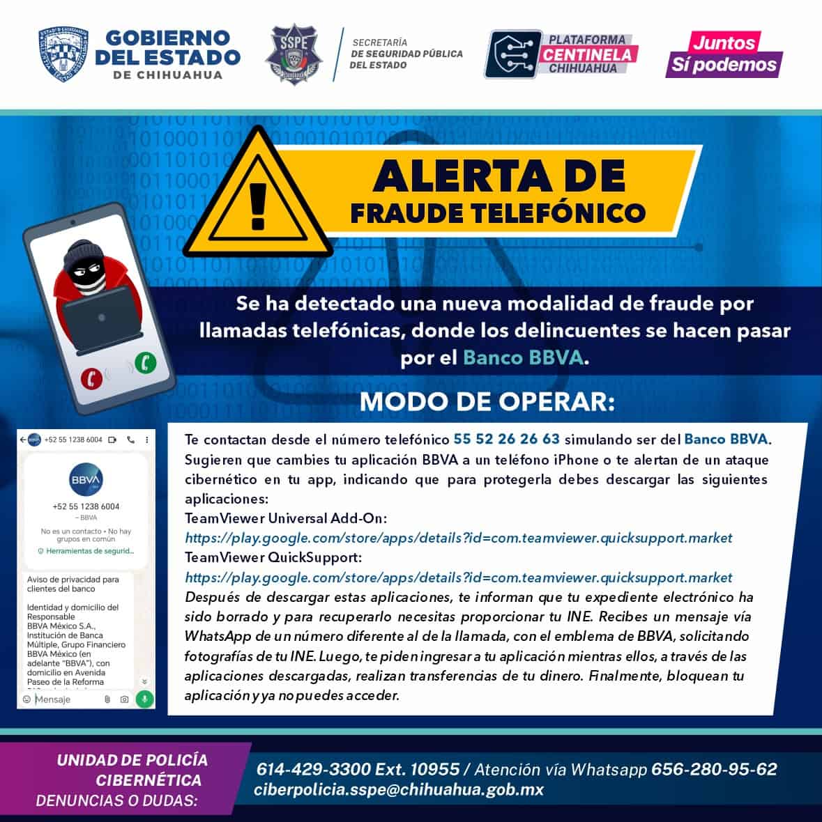 La Secretaría de Seguridad Pública del Estado (SSPE), alertó a la ciudadanía sobre una nueva modalidad de fraude digital, en la que los ciberdelincuentes se hacen pasar por personal del Banco BBVA.
