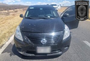 Elementos de la Agencia Estatal de Investigación (AEI) de la Fiscalía de Distrito Zona Sur, recuperaron un automóvil marca Nissan, línea Versa, modelo 2012, de color negro que contaba con reporte de robo en la ciudad de Parral.